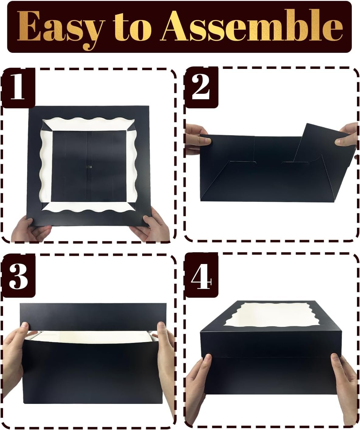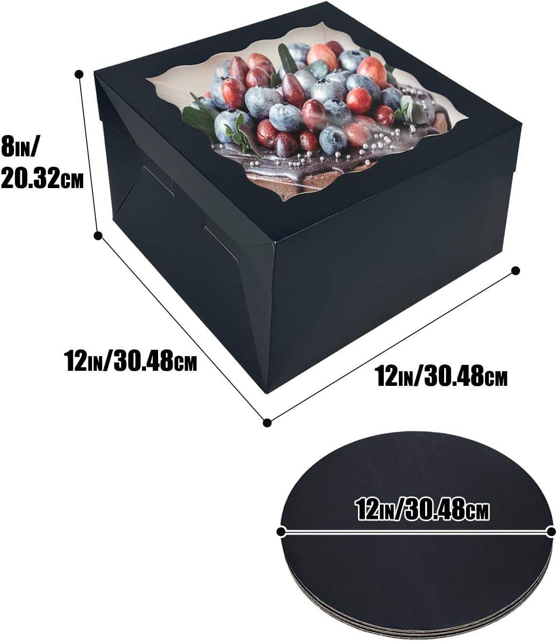 | 12″x12″x8″ | 4 | Noir | Créations de gâteaux, pâtisseries |