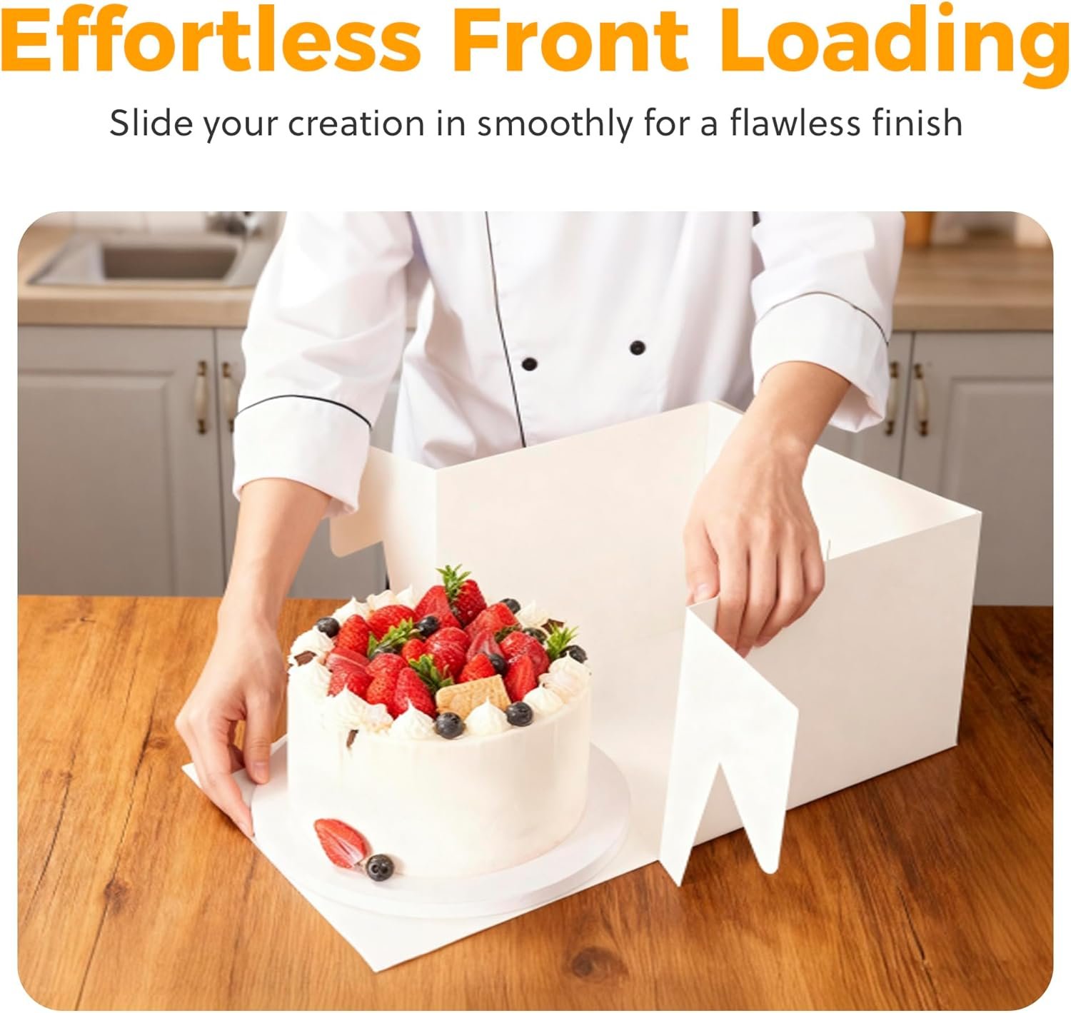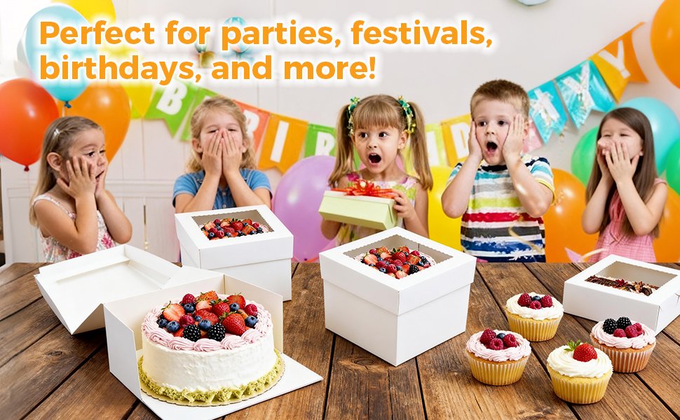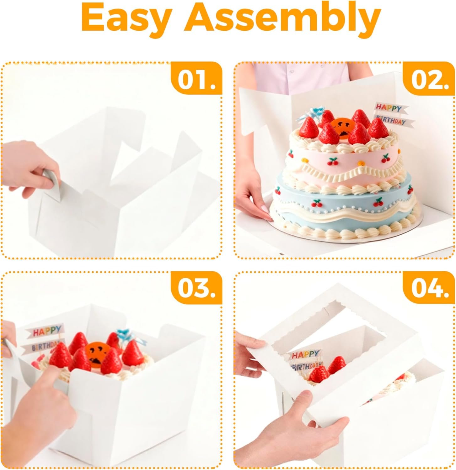 VUE IMPRENABLE SUR VOS DESSERTS: La boîte à gâteau de 25,4 cm vous permet d’admirer vos gâteaux et desserts sans avoir besoin de l’ouvrir ! Le couvercle transparent large permet une visibilité totale, améliorant ainsi la présentation et faisant de ces boîtes un choix idéal pour les cadeaux ou occasions spéciales telles que les mariages, anniversaires et événements de boulangerie.